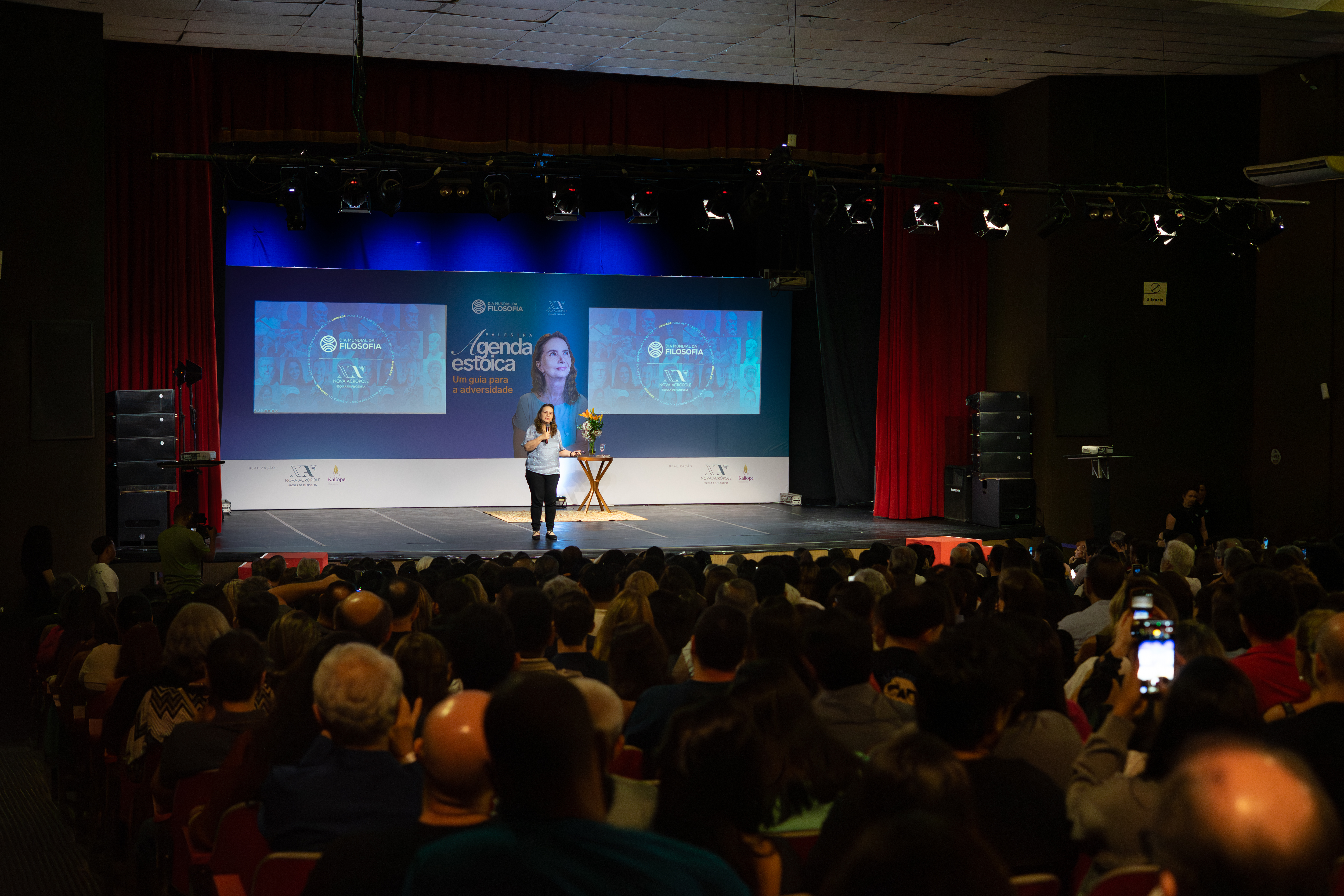 Em suas apresentações, a profa. Lúcia Helena convidou o público a reconhecer que, apesar das diferenças emocionais, culturais e individuais, todos partilhamos o mesmo anseio por verdade, beleza, bondade e sentido. A palestra apresentada — “Agenda Estóica” — explorou como o pensamento filosófico pode servir como prática diária de autodesenvolvimento e de unidade interior, essencial para superar as polarizações contemporâneas.