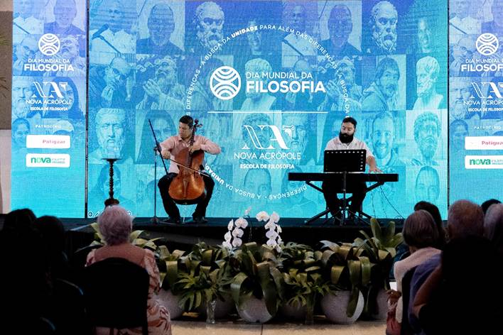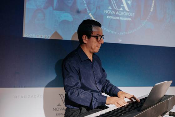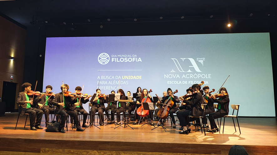A noite contou ainda com apresentação da Orquestra Filarmônica da Nova Acrópole – Programa Criança para o Bem, emocionando o público e reforçando a importância da arte como instrumento de elevação e educação sensível.