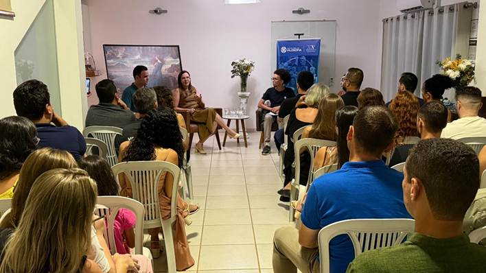 A unidade realizou um Café Filosófico com comentários sobre Meditações, de Marco Aurélio, conduzido pelo professor Gabriel Freitas, seguido da palestra A Arte de se Ver e Aprender com o Outro, com a professora Alice Amaral.
