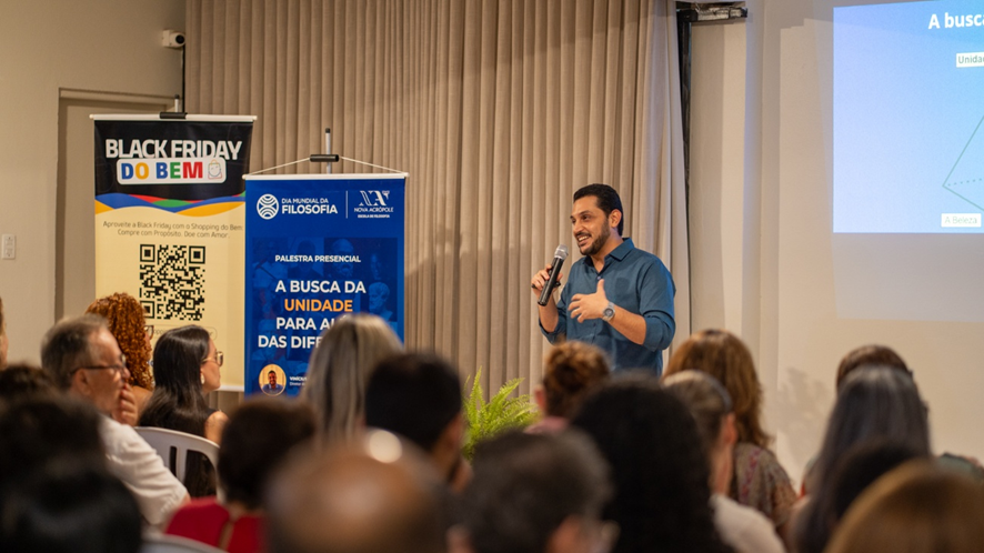 A celebração do Dia Mundial da Filosofia contou com um circuito de palestras da professora Lúcia Helena, levando reflexões filosóficas a milhares de pessoas em três encontros. Seu objetivo foi aprofundar a compreensão sobre o convívio humano, a força das virtudes e o papel da filosofia como elemento de união entre indivíduos, culturas e perspectivas.