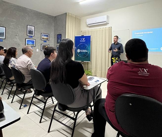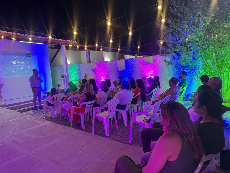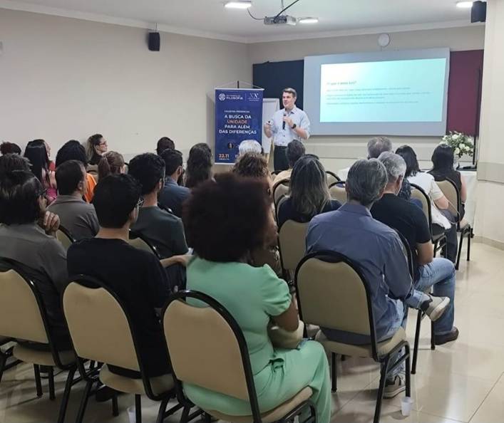 O professor Phelipe Valles abordou a filosofia como ferramenta para superar diferenças, promover o diálogo e fortalecer a cooperação entre pessoas e culturas. A palestra destacou como as virtudes, a ética e a reflexão podem transformar conflitos em conexões significativas, contribuindo para um mundo mais fraterno.
