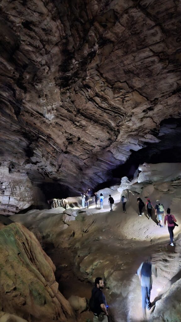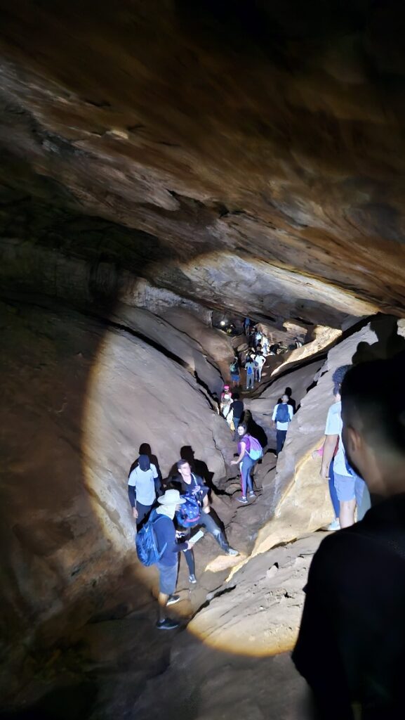 A atividade aconteceu na chamada “Caverna da Garganta” — também conhecida como Caverna das Samambaias —, cujo nome se deve à sua entrada estreita, semelhante a uma garganta, e às inúmeras samambaias em seu interior. A experiência começou com um momento de superação e coragem: a descida por uma escada íngreme entre pedras, desafiando os limites físicos e emocionais dos participantes.