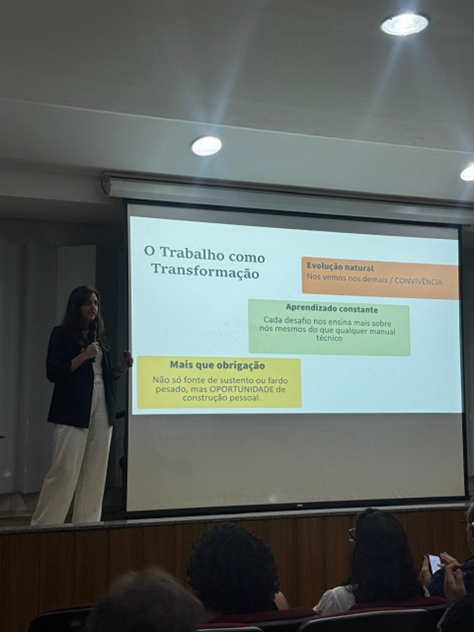 Como parte da celebração, a professora e voluntária da Nova Acrópole há 15 anos, Nayara Pena Mota, ministrou a palestra “O Valor do Trabalho” para um público de cerca de 60 pessoas, entre diretores e ex-diretores, professores, servidores e alunos da faculdade. A reflexão destacou o trabalho não apenas como meio de produzir resultados, mas como expressão da essência humana, caminho de autoconhecimento e contribuição social.