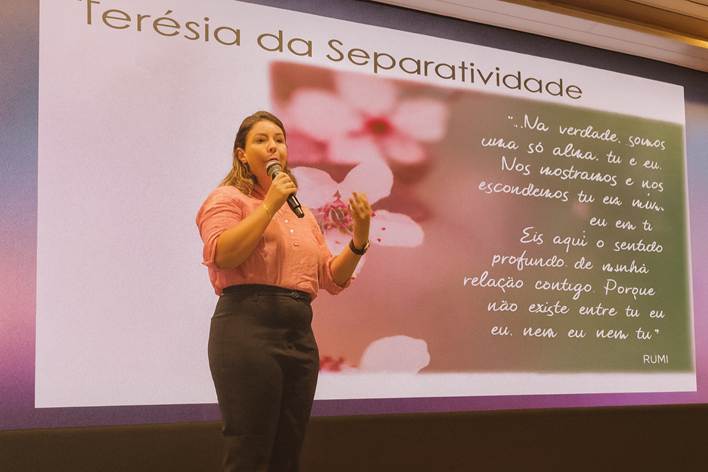 Representando a Nova Acrópole de Natal, a professora Ingrid Gurgel ministrou a palestra “Aprendendo com o outro: o ser humano como espelho”, abordando a importância de cultivar uma postura interna de abertura, escuta e aprendizagem contínua.