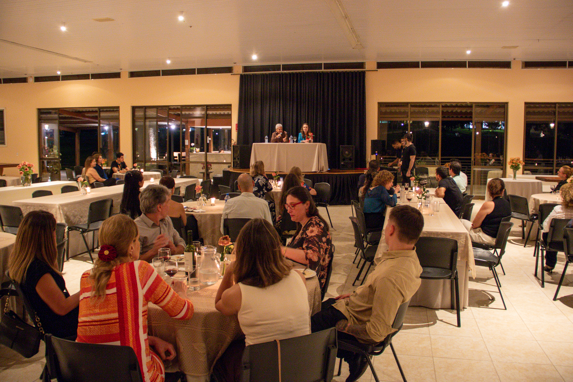 À noite, os participantes prestigiaram belíssimas apresentações artísticas: ballet, declamação de poesia, músicas, incluindo e uma interpretação musical de “O Fantasma da Ópera” encantaram o público. Após a ceia, a professora Lúcia Helena e o professor Luis Carlos Marques conduziram um momento de perguntas e respostas, ampliando reflexões sobre autoconhecimento, convivência e propósito de vida.