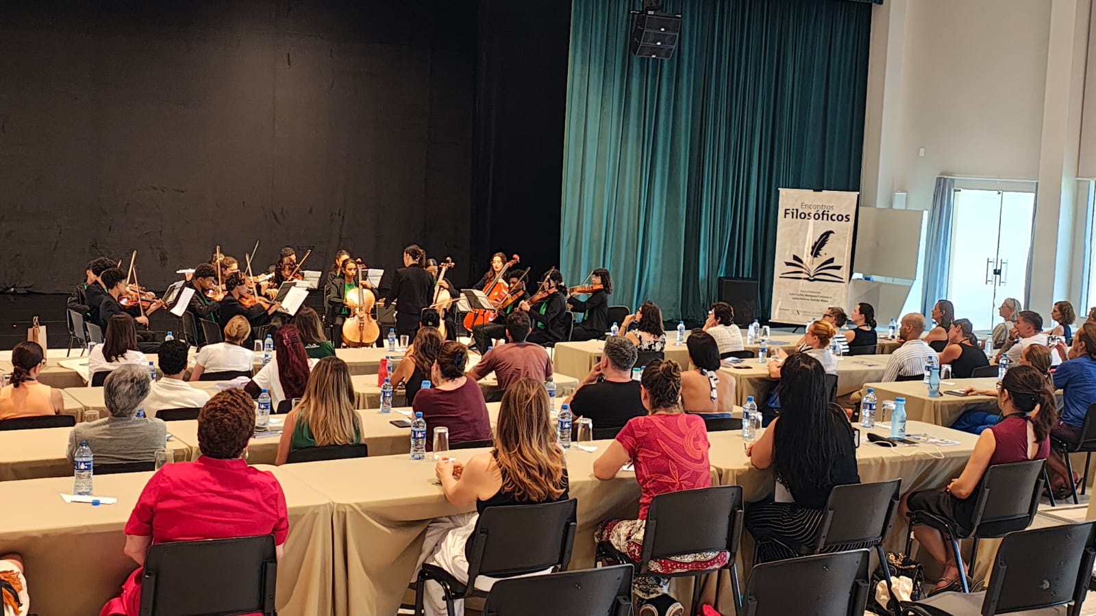 À tarde, aconteceu um dos momentos mais emocionantes do evento: a apresentação da Orquestra Filarmônica Juvenil da Nova Acrópole, composta por integrantes do Projeto Criança para o Bem, que tocou com sensibilidade e surpreendeu o público. A apresentação serviu de abertura para a aula da professora Lúcia Helena Galvão, com o tema “O melhor caminho para a autorrealização”. Entre música e filosofia, o encontro conseguiu refletir seu propósito: promover momentos de conexão com ideias que fazem parte da melhor expressão do ser humano.